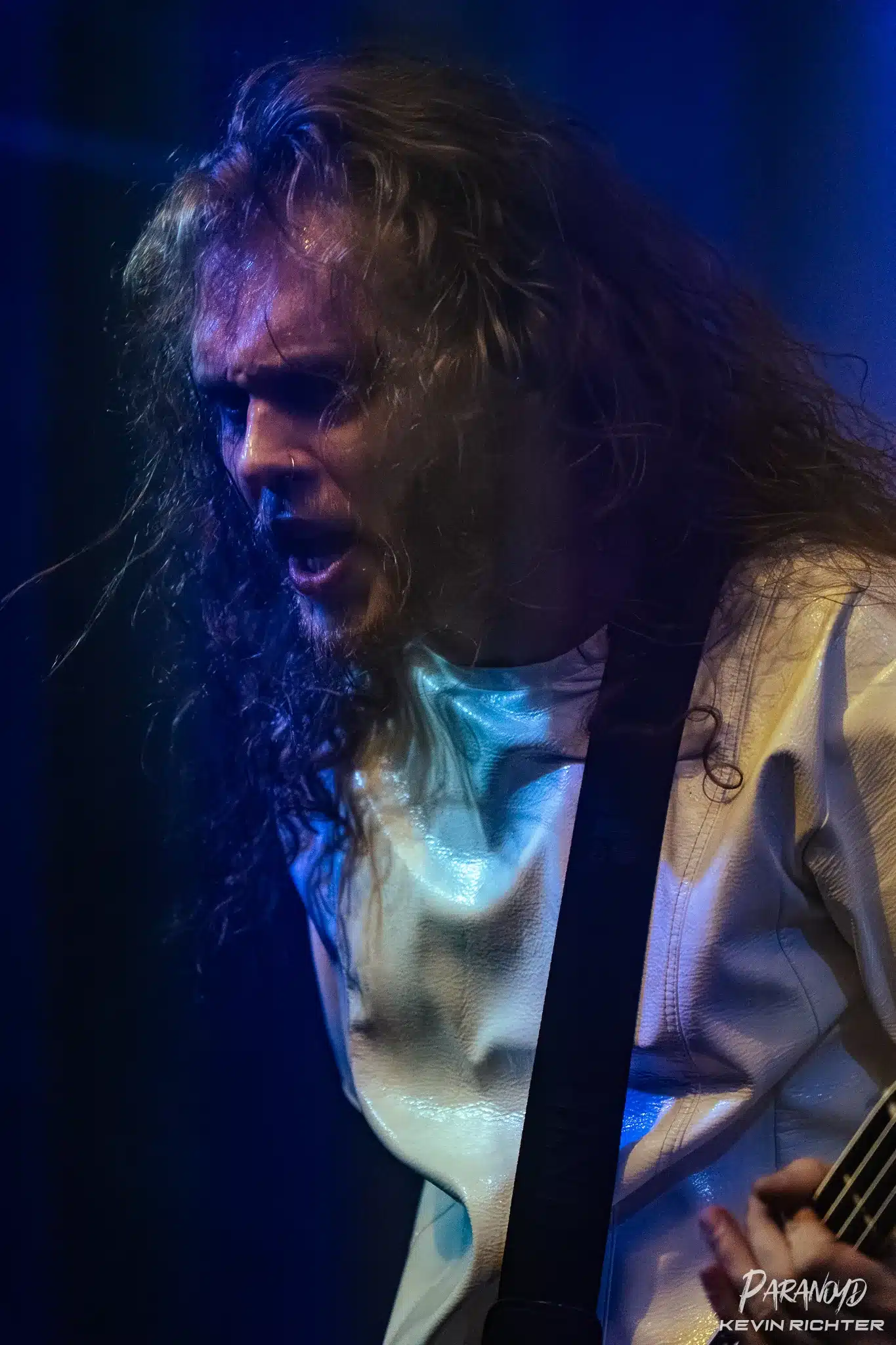 Schon optisch setzte die Band ein klares Statement – Bassist Mirko, Schlagzeuger Taz und Gitarrist Arttu erschienen geschlossen in weißer Lederkleidung, während Frontmann Samy Elbanna in schwarzem Leder und oberkörperfrei auftrat, wodurch seine zahlreichen Tattoos sofort ins Auge fielen. Mit „Afterlife“ als Opener ihres insgesamt 17 Songs umfassenden Sets legten sie direkt los – und das mit voller Wucht. Keuchende Screams, verzerrte, druckvolle Riffs und eine massive Basslinie entfalteten sofort ihre Wirkung.