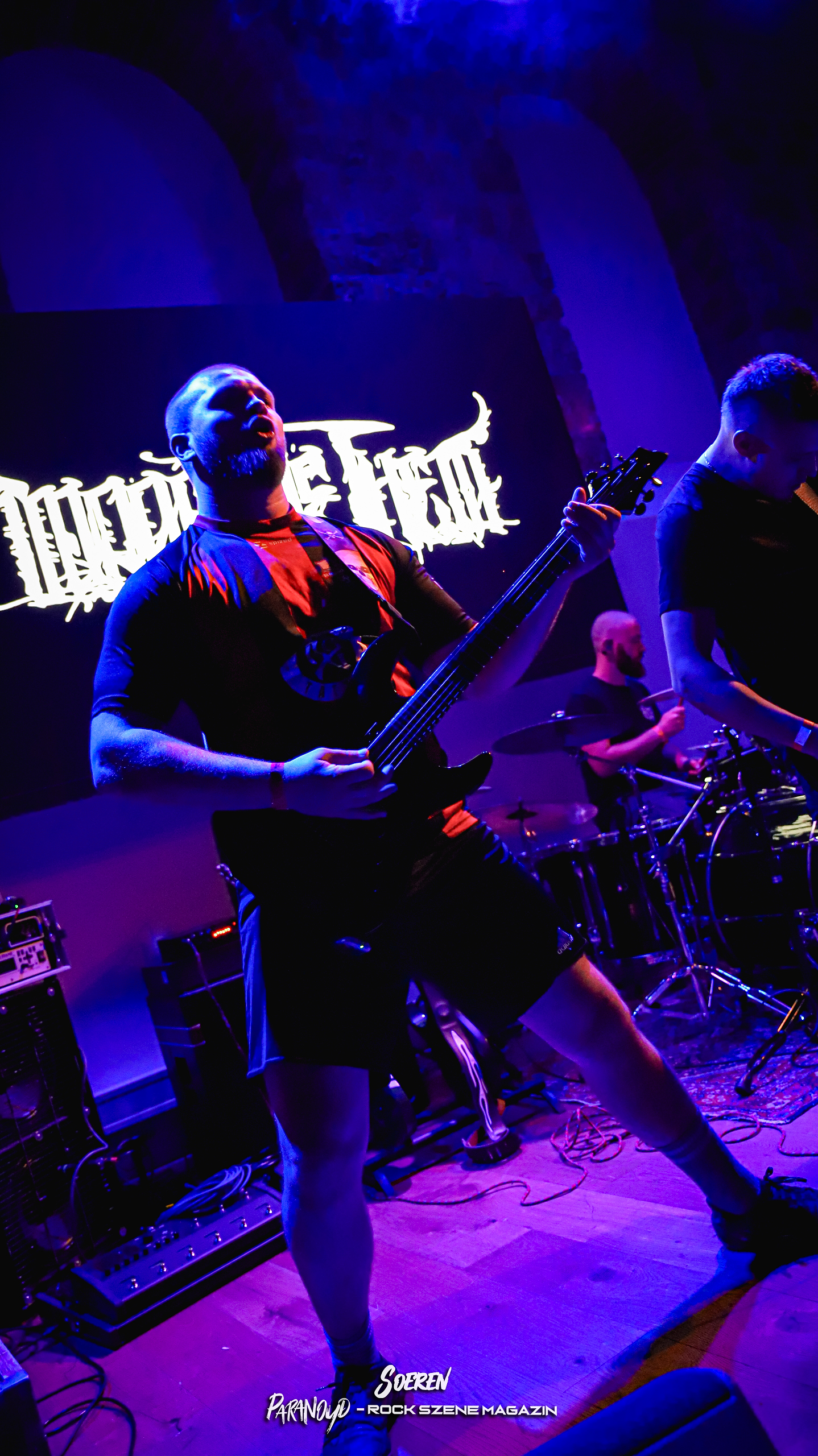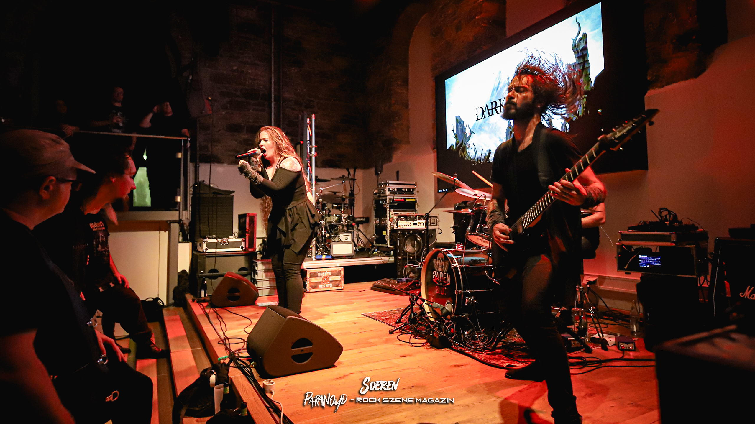 Den Abend eröffneten die Lokalmatadoren von Impact of Theia, die mit ihrem Deathcore-Sound und einer starken Bühnenpräsenz das Publikum ordentlich einheizten. Mit den Portugiesen von Dark Oath folgte ein besonderer Leckerbissen. Hier hervorzuheben ist die Frontfrau, die mit ihrem Black Metal Gesang, ihren Headbang-Einlagen und extrem viel Selbstbewusstsein der optische und akustische Mittelpunkt dieser Band ist. Ich denke, für einen Großteil der anwesenden Zuschauer war die Band das Highlight bzw. die Überraschung des Abends.
