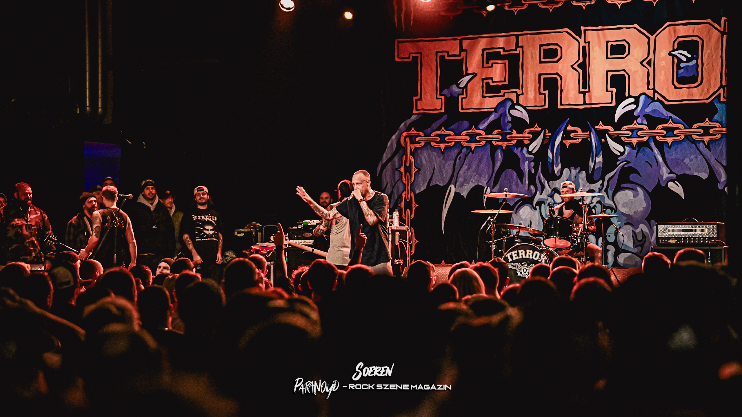 Der Höhepunkt des Abends war zweifellos der Auftritt von Terror. Die kalifornische Hardcore-Legende heizte dem Publikum mächtig ein und es war eine extreme geile Stimmung vor der Bühne und insgesamt in der ganzen Halle. Der Fotograben verhinderte eine noch größere Eskalation, normalerweise leben Hardcore Shows von der direkten Nähe und Interaktion zwischen Band und Publikum. Teilweise schafften es ein paar Fans auf die Bühne, dennoch stellte der Fotograben und die darin befindliche Security aber eine gute Barriere dar. Bei der Größe der Halle und anwesenden Zuschauern zweifelsohne die richtige Entscheidung.